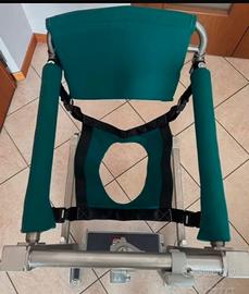 Comprende 2 fasce, una per la seduta ed una forata con cinghie regolabili per il bagno.
