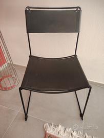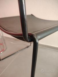 Sedie da pranzo vintage di design in cuoio nero di Giandomenico Belotti, prodotta per Alias Italia negli anni 80. Questo modello presenta la stessa struttura, ma in questa versione ha la seduta in cuoio. Le linee sono eccezionalmente eleganti. Le sedia è leggera e impilabili.