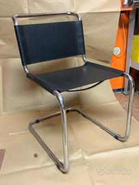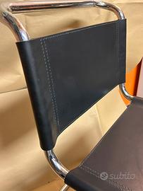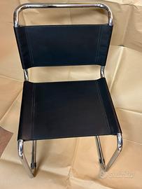 Vendo 2 sedie Stamm e Breuer prodotte in Italia alla fine degli anni 90. Seduta e spalliera sono cucite come da foto, tiranti sotto in ferro. Cuoio nero pienofiore di ottima qualita, non ci sono segni di graffi o spacchi. La qualita della cromatura è ancora buona.