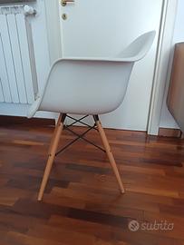 Sedia in stile Eames bianca in plastica rigida, gambe in acciaio nero. Design elegante. larghezza cm. 58 / altezza cm. 78 / profondità cm. 40. nessun difetto praticamente nuova