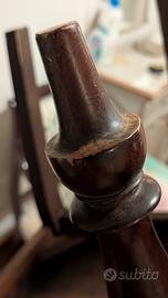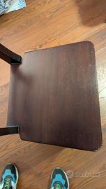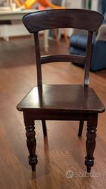 Sedia in legno da scrivania stile retrò, color mogano, presenta alcuni segni di usura come in foto sulla gamba e la seduta. Misure larghezza 47,altezza 89, altezza della seduta 45, profondità 43. Ritiro a mano zona Livorno. No spedizione.