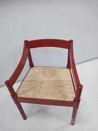 Sedia nuova prodotta in stile vintage modello GILDA in legno massiccio di faggio verniciata rossa con sedile paglia.