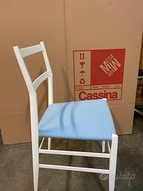 La Sedia 699 "Superleggera" disegnata da Gio Ponti per Cassina. struttura in frassino naturale tinto bianco a poro aperto con sedile imbottito e rivestimento in tessuto vedi foto, per quantità e finiture chiedere in privato, Grazie