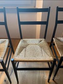 Elegante set di quattro sedie Superleggera, disegnate da Gio Ponti e realizzate da Cassina, autentico simbolo del design italiano del ’900. Le sedie si presentano in ottimo stato conservativo, con struttura in legno di frassino e seduta in canna d’India intrecciata, leggere ma estremamente resistenti, fedeli all’intuizione originale del maestro.