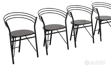 4 sedie vintage di design 1985 molto rare, in buono stato. Vendo a 320 euro l'una o 1200 euro per tutte. Non posso spedire per l'ingombro quindi preferisco vendita a Lecce o a vostro carico con un vostro corriere di fiducia. Valuto vostre proposte adeguate.