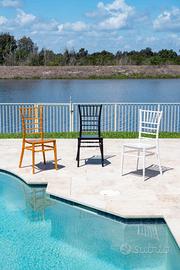 Sedia ORIGINALE CERTIFICATA CATAS chiavarina, tiffany, chiavari per ristorante wedding matrimonio sala ricevimenti impilabile in polipropilene con Iniezione a Gas rinforzata con fibra di vetro. Versione con 3 stecche orizzontali spalliera alta e di altissima qualità con trattamento anti-uv resistentissima e specifica per uso contract
