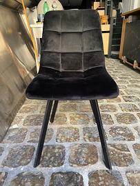 sedia in microfibra effetto velluto di colore nero struttura in metallo verniciato nero opaco