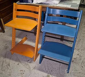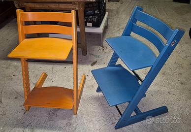 vendo sedie tripp trapp evolutive usate, segni di usura ma struttura senza difetti, nessun accessorio, acquisto di entrambe a €160 oppure la singola a €90, no spedizione solo ritiro in zona