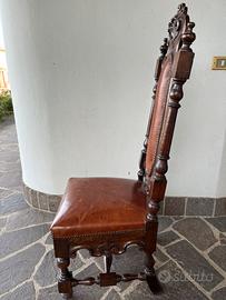 Vendo sedia trono in legno con testa di leone, schienale e seduta in vera pelle marrone..... tenuta per arredamento mai usata. Altezza: 127 cm Larghezza: 48 cm Profondità: 49 cm