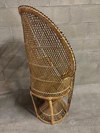 Iconica sedia “Peacock” in rattan naturale, originale anni ’60/‘70. Design ricercato, perfetta come pezzo da esposizione, arredo boho-chic, scenografie fotografiche o angolo lettura di carattere.