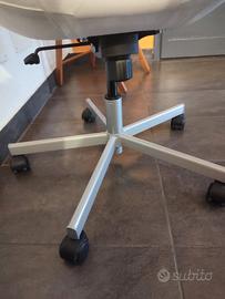 Sedia ufficio bianca , comodissima e regolabile, con ruote . cuscino un po' rovinato nella parte davanti ma si può coprire . Ritiro a mano o possibile consegna zona Tortona Alessandria Asti Casale Pavia Vercelli Novara Genova Milano Binasco