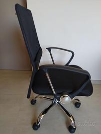 Ampia e ideale anche per persone robuste dato che la base è in acciaio cromato e la seduta è larga cm 62 tra i due braccioli.