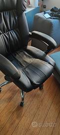 Sedia da ufficio usata ma in buone condizioni,reclinabile con poggiapiedi. La sedia presenta delle toppe in pelle nera sintetica.Non spedisco .Scambio a mano presso mio domicilio, zona metro san Giovanni.