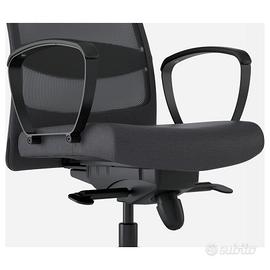 Sedia ergonomica per l’ufficio assicura comfort e concentrazione grazie a funzioni come il meccanismo di inclinazione regolabile manualmente, il poggiatesta e i braccioli, che aiutano a rilassare i muscoli di collo e schiena. - Il materiale a rete dello schienale favorisce l'aerazione. - La fodera per sedia è realizzata con il tessuto in poliestere Vissle tinto in massa. Si tratta di un materiale resistente, con una trama liscia e un piacevole effetto cangiante. Questa sedia ergonomica per l’ufficio ha tante funzioni che le permettono di adattarsi facilmente al tuo corpo: - Supporto lombare: facilita il mantenimento di una corretta posizione e riduce la tensione sulla parte inferiore della schiena. - Braccioli: supportano gli avambracci e riducono le tensioni su schiena e spalle. - Meccanismo d'inclinazione manuale: per regolare la resistenza dello schienale. - Meccanismo d'inclinazione sincronizzato: si muove con te quando fai pressione all'indietro per liberare i fianchi e il torso e migliorare la circolazione e l'energia. - Blocco dell'inclinazione (3 posizioni): blocca l'inclinazione della sedia in posizioni diverse per migliorare stabilità e supporto. - Altezza del sedile regolabile: facilita il mantenimento di una corretta posizione e riduce la tensione sulla parte inferiore della schiena. Altezza del sedile regolabile. Tensione di inclinazione manuale. Meccanismo di inclinazione. Meccanismo di inclinazione sincronizzato. Blocco del meccanismo di inclinazione. Supporto lombare. Valore nuova in negozio 159,00 €. Ritiro a esclusiva cura e spese dell'acquirente (NON incluso nel prezzo).