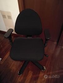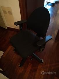 Sedia ufficio Ikea nera con ruote e braccioli. Usata buono stato. Feltro su ruote per non rovinare il parquet. Ritiro a Mariano Comense, piano secondo.