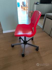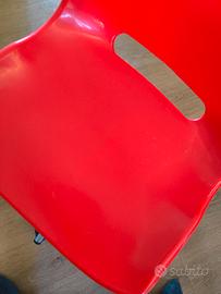 sedia da ufficio/scrivania rossa, non regolabile in altezza. ruote funzionanti, scocca in plastica. piccole imperfezioni sulla seduta, allegata foto.
