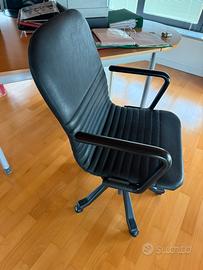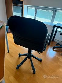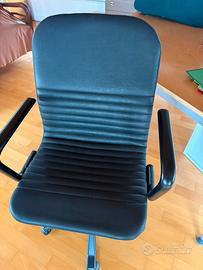 Sedia ufficio slim nera con ruote – design compatto Vendo sedia da ufficio dal design slim, ideale per chi cerca una soluzione compatta e funzionale per smart working o studio. Linea semplice e pulita, facilmente inseribile in qualsiasi ambiente. Seduta comoda con imbottitura e struttura stabile con base a 5 razze e ruote. Caratteristiche: •Design sottile e salvaspazio •Seduta imbottita •Braccioli integrati •Altezza regolabile •Base con ruote Misure: •Seduta: larghezza 49 cm – profondità 38 cm •Altezza seduta: min 42 cm / max 50 cm •Altezza schienale: 50 cm (dal piano seduta) Condizioni: buone (normali segni d’uso) Perfetta per postazioni secondarie, cameretta o home office. Ritiro a mano