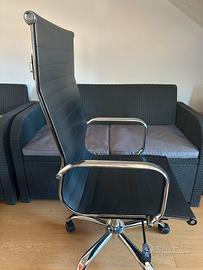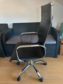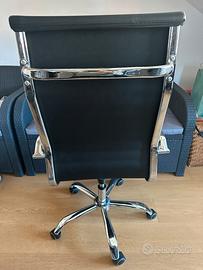 Sedia ufficio TASK di Tomasucci in pelle sintetica nera, regolabile in altezza, reclinabile e con ruote. La pelle è immacolata, come tutta la sedia