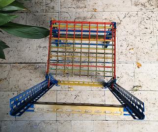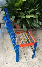 Il materiale proviene da un magazzino e unica soluzione possibile è stato realizzato la sedia adatta per esterni. È un pezzo unico nel suo genere. Se desideri si può realizzare un'altra ma con tuo materiale.