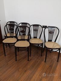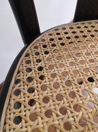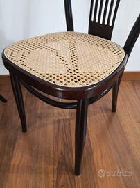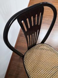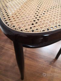 Sedia vienna bistro' thonet. Realizzata in legno del diametro di 25 mm, verniciato . La seduta è in polipropilene, un materiale plastico ad alta densità molto resistente che richiama la classica in paglia di Vienna. Questa sedia è perfetta per ogni ambiente domestico arredato in stile classico. I sedili sono intercambiabili, nel corso del gli anni basterà cambiare il fondello per ridare vita alla sedia. Ispirata dal design delle classiche sedie viennesi, rappresenta la soluzione d'arredo ideale. La sedia misura L 42 x P 49 H schienale 88 H seduta 45 cm. Vendesi n. 6 Sedie. No perditempo.