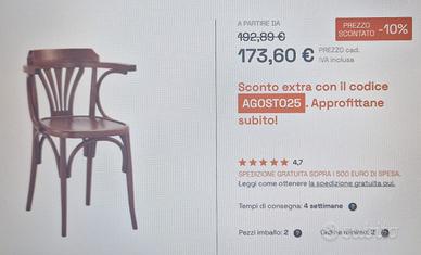 Vendo una sedia Viennese del famoso stile Thonet da scrivania, come da foto vedete il reale prezzo di vendita, (2 disponibili) condizioni pari al nuovo, solo ritiro di persona.