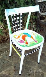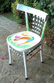 sedia in legno vintage rivisitata e dipinta a mano con il gatto oggetto artistico facilmente collocabile in qualsiasi ambiente ,usata come sedia per il gatto o come oggetto decorativo sono state utilizzate tutte pitture ad acqua per il prezzo contattatemi