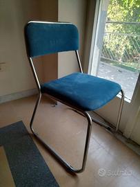 1 di 4 Vintage sedie in metallo e velluto verde e blue, anni '70, Sedie retrò