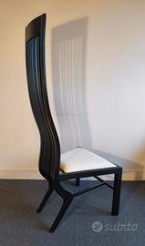 bellissima sedia in legno laccato mod. "Monroe" anni '80 , progettata da Arata Isozaki , con seduta bianca, è nota x la sua struttura slanciata alta cm 142. ottime condizioni piccoli graffi dovuti al tempo. prezzo in privato.