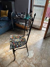 Vendo sedia vintage completamente in ottone personalizzata da me, ho sostituito il cuscino originale (che do insieme alla sedia) con uno personalizzato con i "tappi" delle bottiglie, i quali sono stati posizionati e fissati con trasparente.