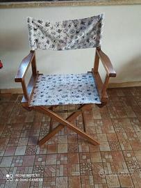 Bellissima sedia tipo regista in legno con braccioli in legno