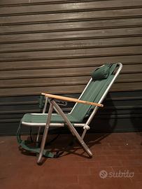 Sedia zaino pieghevole con braccioli in legno, poggiatesta e porta borraccia/bicchiere in alluminio super leggera 4 regolazioni di inclinazione. Nuova con cartellino.