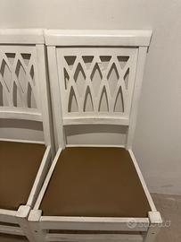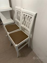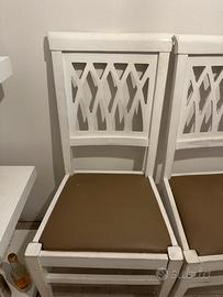 6 sedie in legno biache Con cuscino ricoperto in ecopelle color caramello