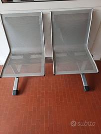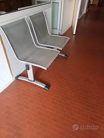 Sedie a panca a due posti con sedute in metallo microforato grigio per sala d'attesa, ufficio , studio usate ma in buono stato . Sono due coppie cioe' 4 posti. Il prezzo si intende per le due coppie .