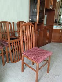 Vendo set di 6 sedie per soggiorno in ciliegio, stile classico e contemporaneo, molto comode con seduta imbottita in tessuto jacquard bordeaux, in buone condizioni.