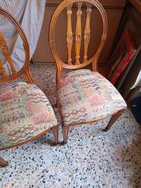 4 sedie.. schienale tondo..seduta imbottitura con tessuto multicolore..usate ma tenute bene...