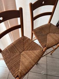Coppia di sedie alte con seduta in paglia e schienale Legno chiaro laccato Altezza seduta 65cm Altezza fino allo schienale 95cm NO SPEDIZIONE, ritiro di persona