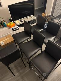 Vendo 7 Sedie Alte/Sgabelli per penisola cucina in buone condizioni strutturali. Come si vede in foto alcuni sgabelli hanno il tessuto consumato (problema tipico dell’ecopelle) ma è sostituibile.