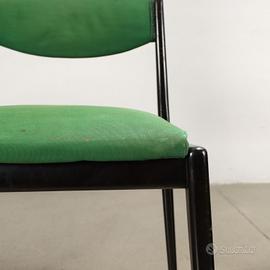 Coppia di sedie, legno tinto ebano, imbottitura in espanso, rivestimento in