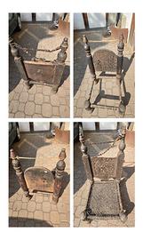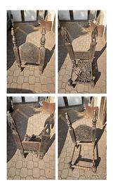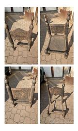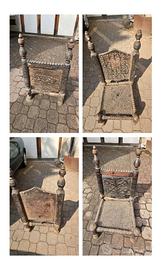 Set di sedie tradizionali afgane in legno intagliato + tappeto afgano. set composto da sedie tradizionali afgane in legno massello con intricate decorazioni intagliate a mano. Le sedie presentano sedute in corda/fibra naturale intrecciata e gambe tornite secondo la tradizione artigianale afghana. Alcune mostrano segni del tempo che ne testimoniano l'autenticità.