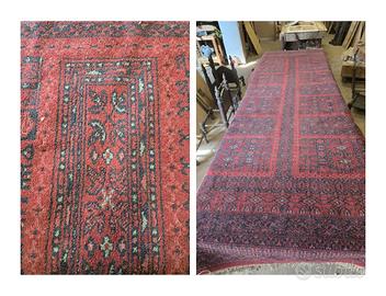 Incluso nel lotto un autentico tappeto afghano dai colori rosso intenso con motivi geometrici tradizionali, perfetto per completare l'arredamento etnico. Alcune in ottime condizione, altre sono danneggiate (come nelle foto).Sedie ritrovate alla fine del secolo scorso proposte nello spazio PALOMAR, Lissone nel 1995 nel tema AFGHANISTAN "Territori perduti" mostrano le vicissitudini di quei territori con la distruzione di una grande cultura. Si puo' vedere la capacita' di queste popolazioni nomadi nel taglio e nell'intreccio delle sedute tutte smontabili a pezzi senza nessuna parte incollata per favorire gli spostamenti e usarle in luoghi non in piano
