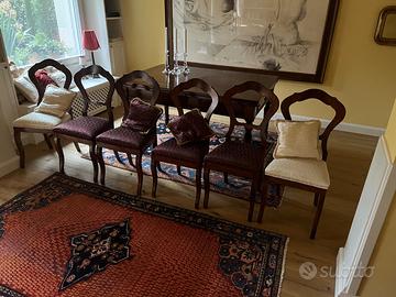 Vendo 6 sedie antiche originali perfettamente restaurate e rivestite con stoffa mezzelune Dedar