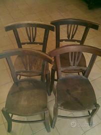 Set di 4 sedie antiche in legno massello dell 800.Prezzo 79 Euro. Set di 6 sedie antiche in legno massello.Prezzo 179 Euro. Condizioni originali,mai restaurati,ne riverniciati. Disponibile per la spedizione,a carico dell'acquirente.