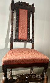 Due sedie in legno di rovere intagliato con gambe tornite. Olanda. XIX secolo. Rarita