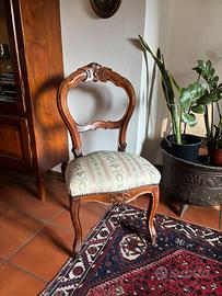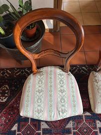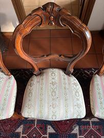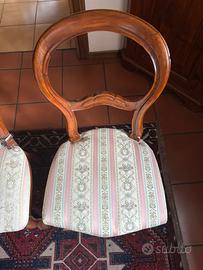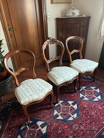 Vendo set di 3 sedie antiche imbottite, con struttura in legno massello e lavorazioni classiche. Seduta imbottita confortevole, schienale elegante, ideali per sala da pranzo, studio o ambienti dallo stile vintage/antico. Le sedie sono solide e ben conservate, con normali segni del tempo che ne attestano l’autenticità e il fascino. Perfette sia come arredo funzionale sia come pezzi decorativi. Ritiro a mano o trasporto da concordare