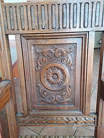 tre sedie antiche metà 800. Una grande ( scranno ) + 2 più piccole in coppia. Legno rovere.