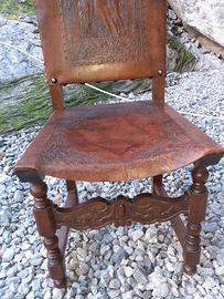 Vendo 2 sedie antiche in legno massello e cuoio.