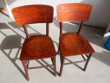 Vendo 2 sedie in legno, con seduta e schienale lavorati. Primi Novecento, perfettamente conservate.