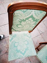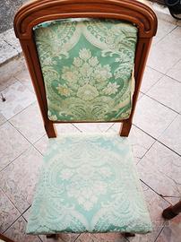 Vendo 5 bellissime sedie in verde smeraldo con disegni particolari materiali in legno. Per casa giardino o altro. Buone condizioni generali leggere usure dal tempo no tarli. In più una in regalo per ricambio non in buone condizioni