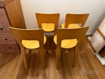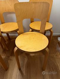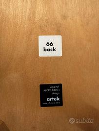 N. 4 sedie in legno Artek Chair 66, design Alvar Aalto 1935. Finitura verniciato naturale, produzione 2005. Ottimo stato di conservazione. Consegna a mano.
