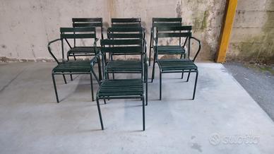 Vecchie sedie bar anni'70 in tubolare di ferro e doghe in legno, sane con normali segni del tempo, patina originale. Euro 70 cadauna, disponibili n.7 sedie. Possibile spedizione. Per info 347 759 6735
